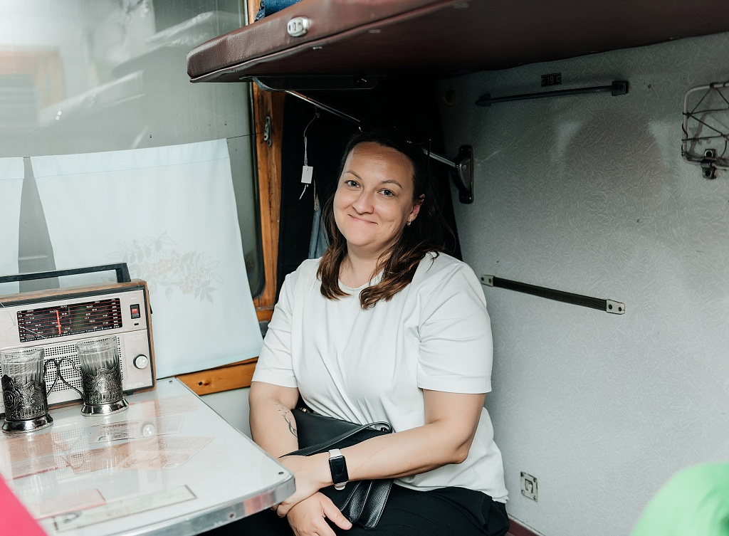 Мы устали... Что, еще музейно-выставочный комплекс по программе? Может, отдохнем, зачем нам музей? И опять ошиблись в ожиданиях. Тут надо всегда помнить, что Когалым – город открытий. Он всегда удивляет! Как изобретательно представлена история этого совсем молодого места, построенного энтузиастами! Какие прекрасные гиды! Особенно меня впечатлил настоящий вагон со стилизацией, на котором приезжали первые переселенцы, горевшие идеей строить новый город. Палатка с гитарой и кроватями, в которых спали первое лето и зиму первые Когалымчане. Так что это не стандартный музей, где под стеклом что-то лежит, а интерактивное пространство, которое рассказывает об этом необычном месте с разных ракурсов - и про первых переселенцев, и про Лукойл, и про Хантов.