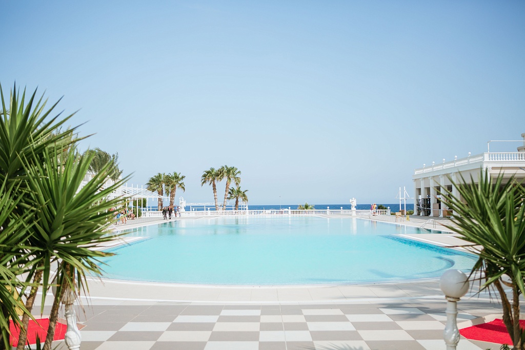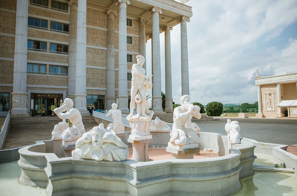 If your guests love the “expensive and rich” style, then this is the place for you. It’s as if you’re arriving at the temple of Artemis herself: Hellenic splendor is everywhere, marble, statues, huge chandeliers, upholstered furniture. On the territory there are gardens and fountains, 5 swimming pools, restaurants (the main one is Agora) and numerous bars. In the luxurious building of the congress center, which can accommodate more than 4,000 participants, all the halls are named after the Greek gods, and in its beautiful foyer you can serve a buffet for 450 guests. Concept — Ultra All Inclusive.