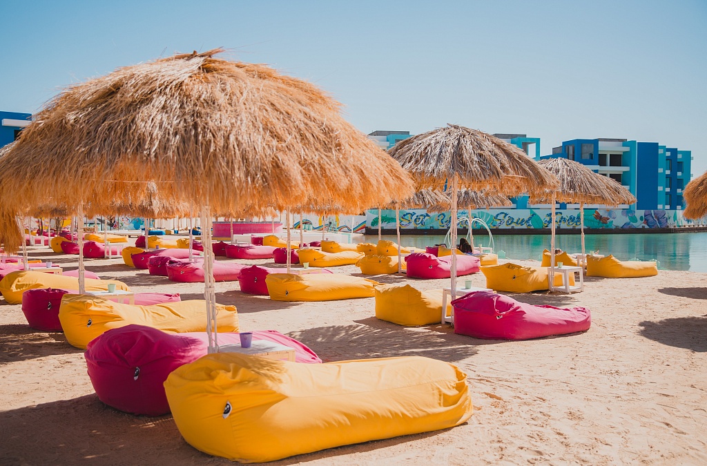 The Ayla cluster is located in a turquoise lagoon on the Red Sea coast — it is paradise on earth incarnate. The source for eco-design is nature itself, abovewater solar panels are used to generate clean energy, and the coral nursery preserves one of the most unique marine ecosystems in the world.