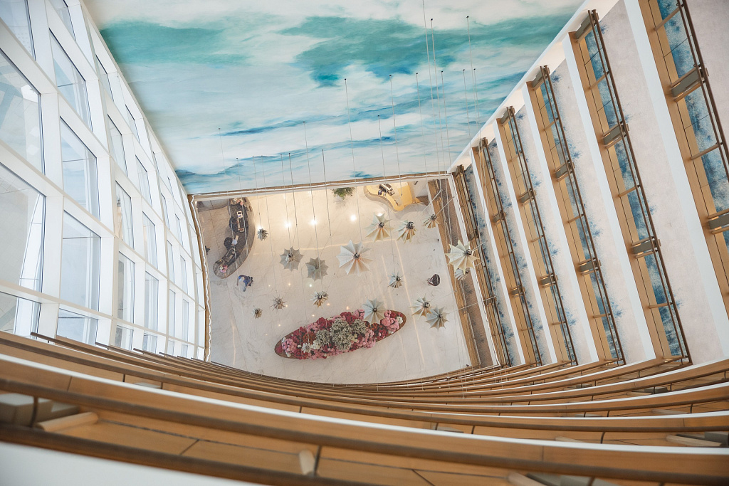 Futuristic wave-shaped architecture, calm eco-tones, open spaces and a feeling of freshness in everything. The hotel offers its guests a collection of 386 rooms, suites and residences whose design is inspired by the luxury of the ocean. For its most demanding guests, the hotel has prepared the Five Bedroom Royal Suite, imbued with a thoroughly royal atmosphere: a spacious terrace featuring a deep pool, a bar and a game area, as well as a private treatment room. In addition, the hotel offers its guests 82 private ultramodern residences located in a secluded location by the marina.