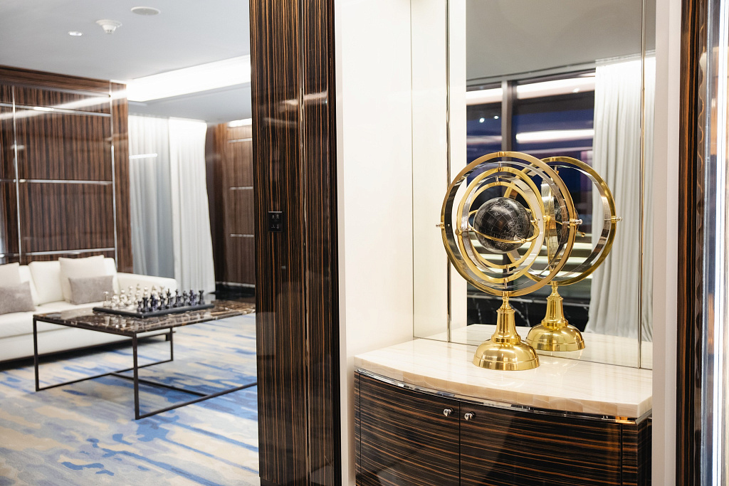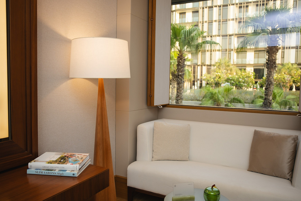 A new landmark location in Dubai. The hotel opened in 2023, on the crescent of the artificial island of Palm Jumeirah. The interiors, rendered using premium materials and handmade wares, feature an unmistakable touch of gold (up to and including the “golden” toothbrushes). The variety of layouts offers the possibility of booking an entire floor. Guest amenities include a private infinity pool set against the dramatic backdrop of the sea and sky, where you can spend the day or evening in an atmosphere of complete tranquility. Designer interiors, Hermès cosmetics and pure comfort.