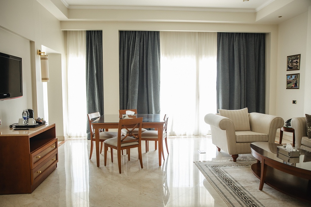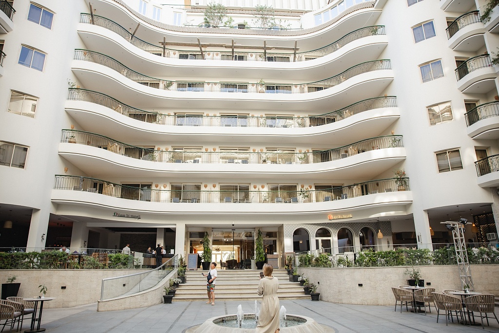 Standing majestically in the heart of New Cairo (near the new EIEC Convention Center), this luxurious five-star hotel offers 245 rooms and suites, magnificent views of the gardens and pool, delicious culinary treats, a luxurious spa and wonderful venues for events of any scale: a separate banquet floor, 11 conference rooms and the largest banquet hall in Cairo. Restaurants: Romanov Steakhouse, a must-visit in Cairo (with a portrait of Nicholas II at the entrance), Yana Asian restaurant with golden Buddhas and the exceptional Italian restaurant Lucca (whose cuisine we tasted). The 1897 bar and cigar lounge impresses with its atmosphere.