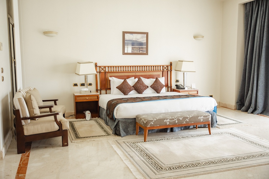 It’s located on a private island surrounded by landscaped gardens spanning a total area of 66.7 hectares. The property offers views of the Nile. While you can't swim in the river, there are three outdoor pools available. The complex boasts more than 10 different restaurants, bars and lounges. The resort can accommodate over 1,000 guests. The conference center with three halls occupies a separate building and can accommodate up to 900 participants. The hotel may not be young, but it has its own charm. It is especially appreciated by those who like nature walks.