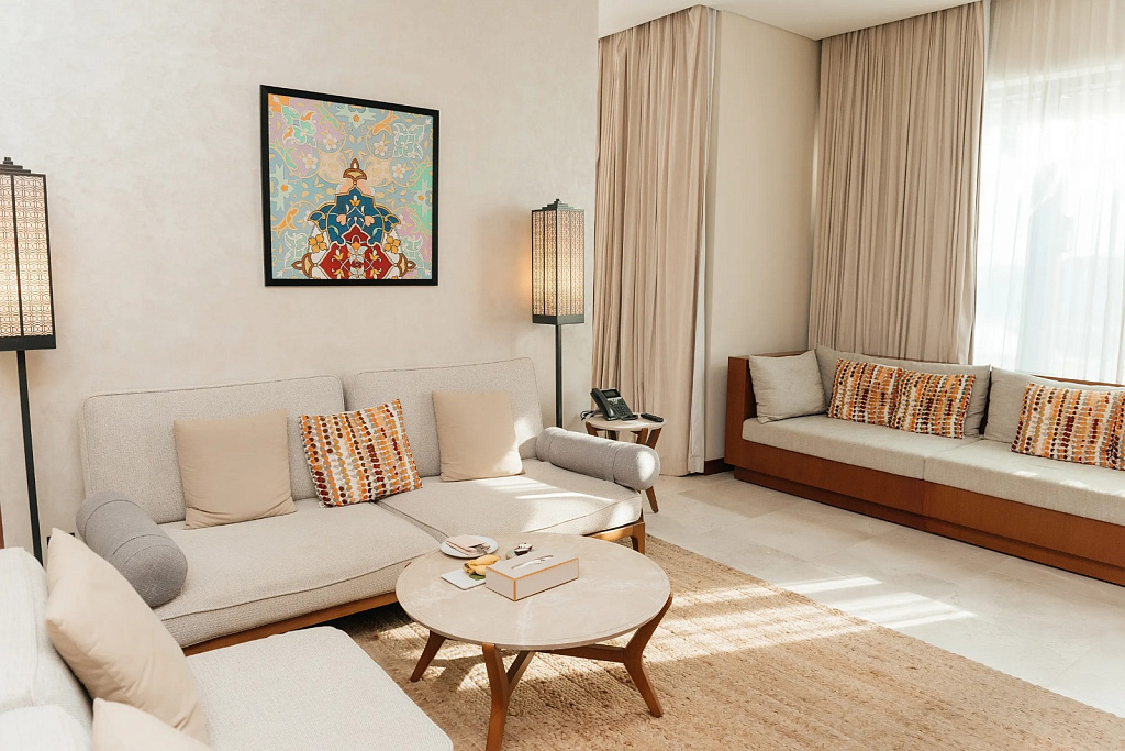 Instead of the museum, we went to get acquainted with the Shangri-la Barr Al Jissah Resort 5* hotel. In essence, it’s an entire beach resort consisting of three hotels of different levels, aimed at both family vacations and the adult public preferring privacy. The complex boasts extensive facilities for holding events of various formats at the highest level. We managed not only to see the hotel, but also to chat with its team over lunch.