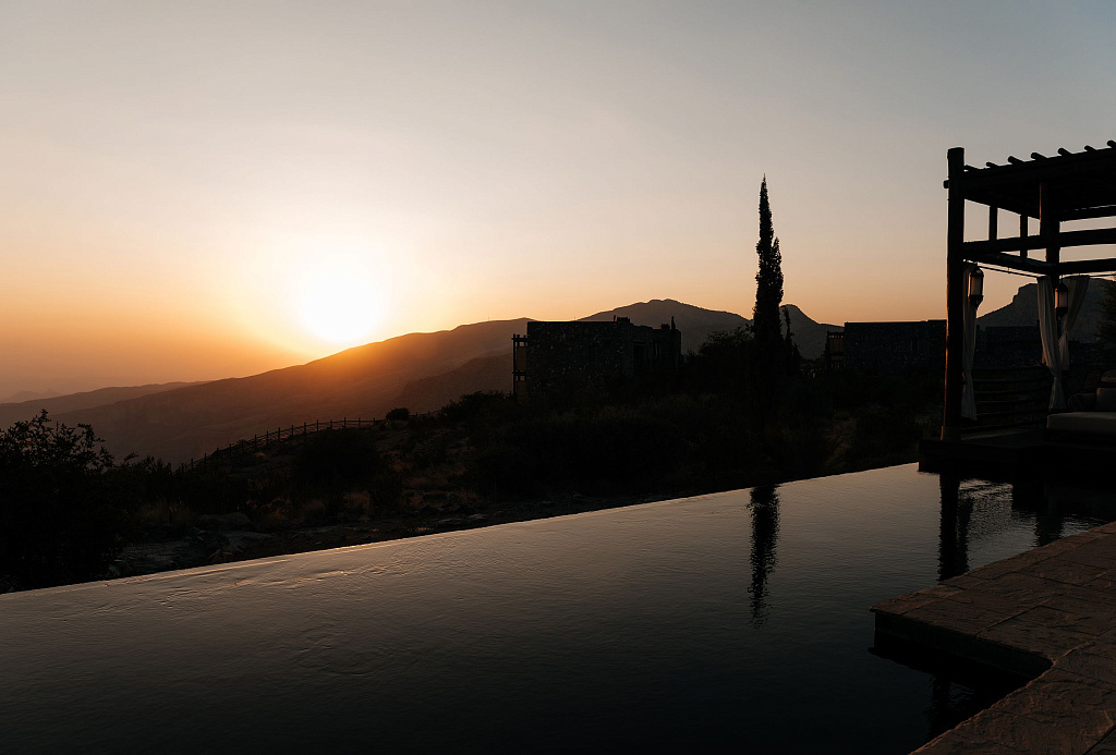 After Nizwa, we went to the mountain range Jabal al Akhdar, which means “green mountains.” The views that stretch out from there are incredibly inspiring. Our exploration of the mountains began with a visit to the Indigo Jabal Al Akhdar 5* hotel. It’s a brand new hotel that captivated us with its design and atmosphere. Despite its compact appearance it’s a resort boasting well-developed infrastructure, including a variety of rooms and suites with individual pools, several restaurants, an outdoor pool and a full-fledged spa complex. Plus, at the end of this year, the hotel will open a conference room to accommodate events.