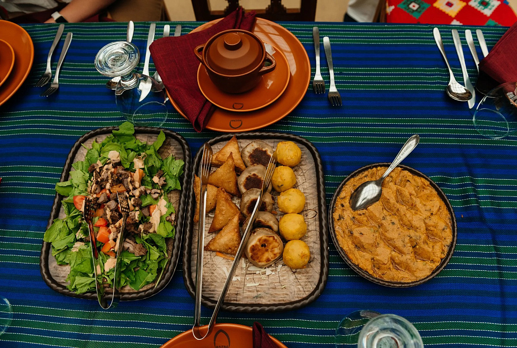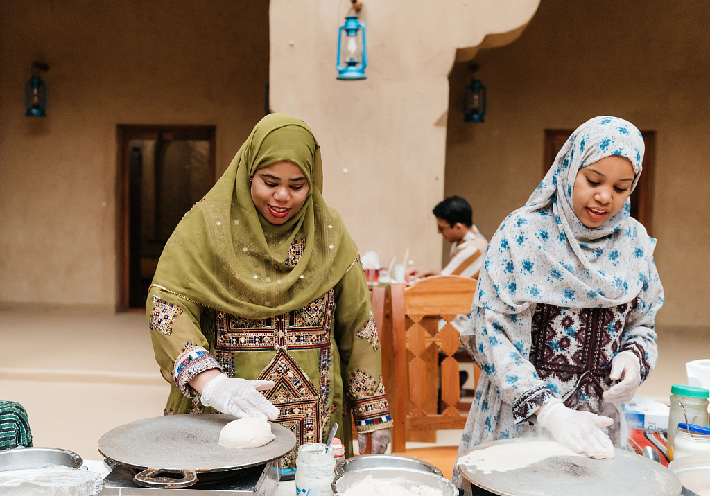 On the way to the airport, we stopped at the historic village of Birkat Al Mouz at the foot of the mountains. Its name translates to “banana creek” – banana and date plantations are located in the village and the active growth of the crops is ensured by a unique system of irrigation canals – falaj, listed as a UNESCO World Heritage Site. For corporate groups, the Pure Arabia host company can organize lunches or dinners on plantations surrounded by palm trees.