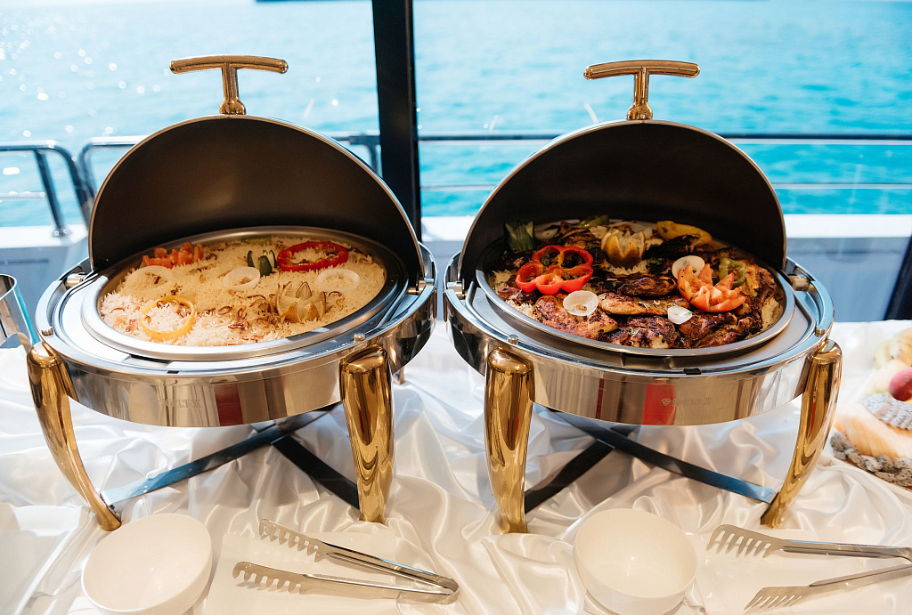 After the water element, we went to explore the sandy expanses of the Wahiba desert. On the way, we stopped at a Bedouin house to get to know the culture and way of life of these desert-dwellers over a cup of traditional coffee. And then, having lowered the tire pressure of our SUVs, we set off to conquer the sand dunes. The highlight of the day was the sunset, which we watched while sitting on a high dune with a glass of sparkling wine. After admiring the spectacular views and enjoying a warm, heartfelt conversation about local traditions with our guide, Said, we went for an overnight stay at the Desert Nights Camp. The camp has separate cabins with living areas, full bedrooms, fully-equipped bathrooms, terraces and air conditioners. After settling in and freshening up, we went to dinner. Meat dishes are perfectly prepared here, and the lamb, cooked for seven hours in the oven with fragrant rice, was the perfect end to the day. Sunset and sunrise in the desert make for the most incredible and unforgettable experience, one that’s sure to make any event vivid and memorable.